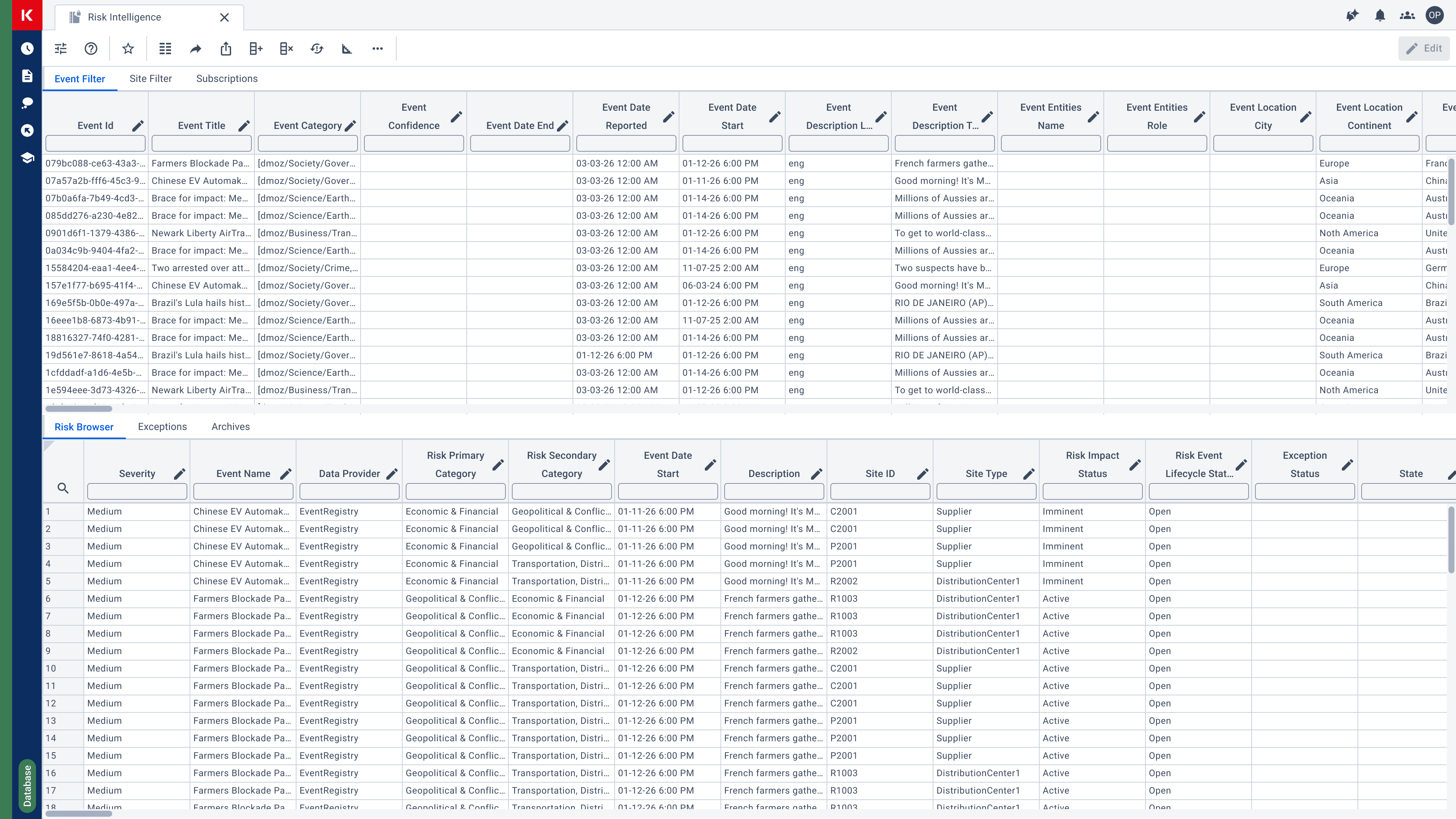 Risk Intelligence — surfacing global disruptions and guiding mitigation